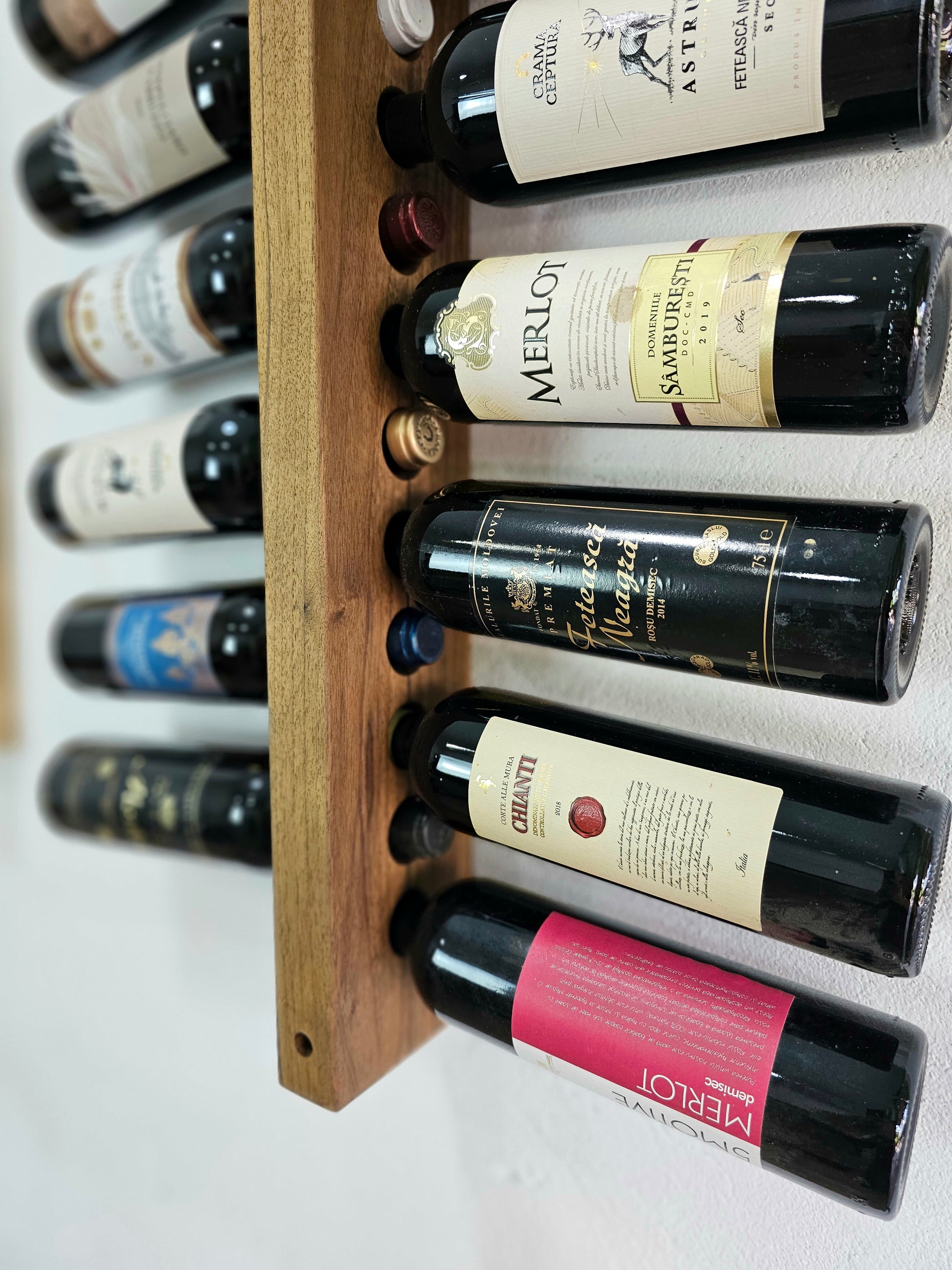 Vælg mellem tre størrelser: 60 cm til 10 flasker, 80 cm til 14 flasker og 120 cm til 21 flasker. Vinreolens ca. 4 cm tykkelse og 11 cm dybde skaber en robust og samtidig elegant ramme omkring din vinindsamling, og dens alsidighed gør den velegnet til enhver placering i dit hjem.