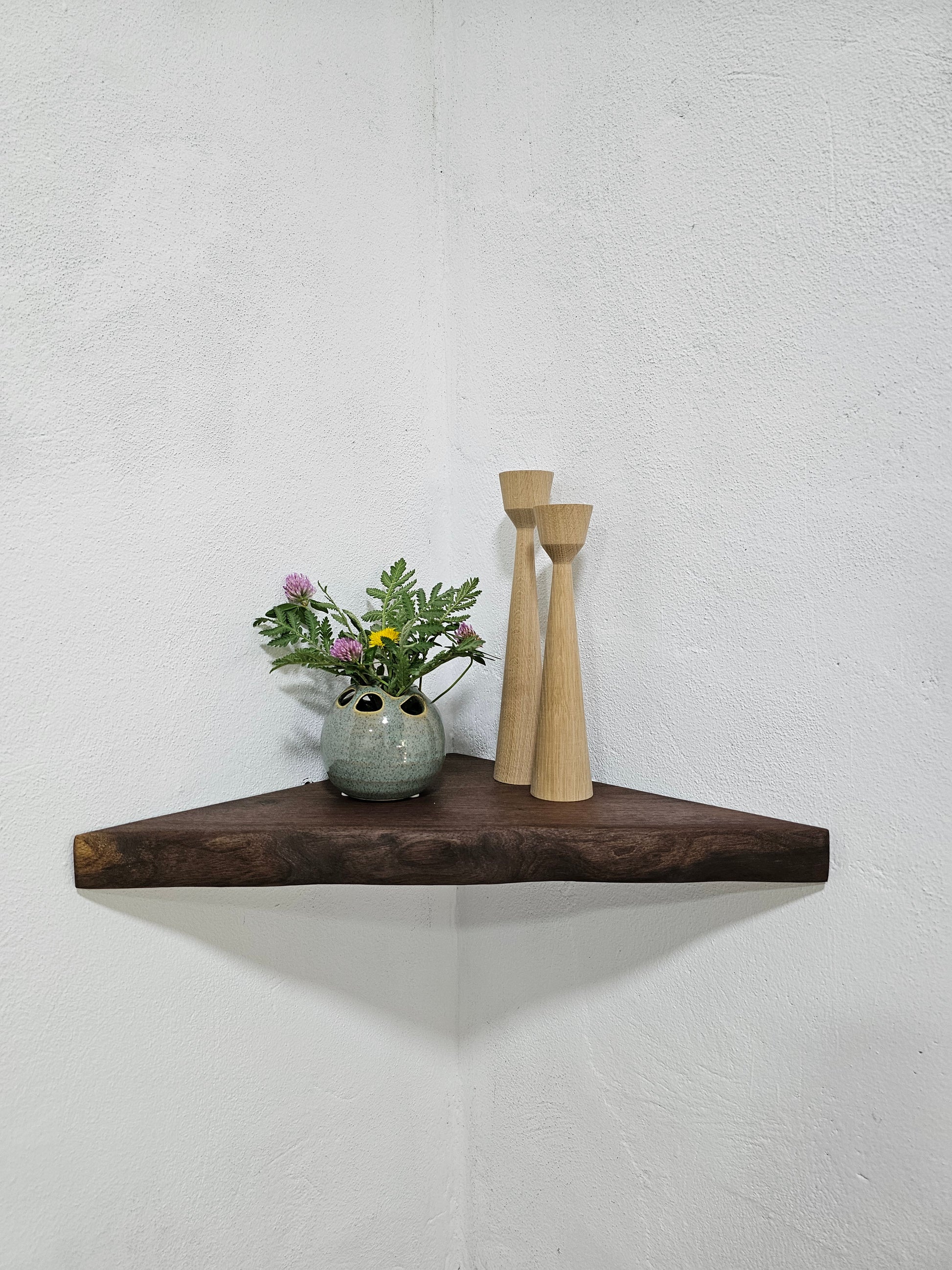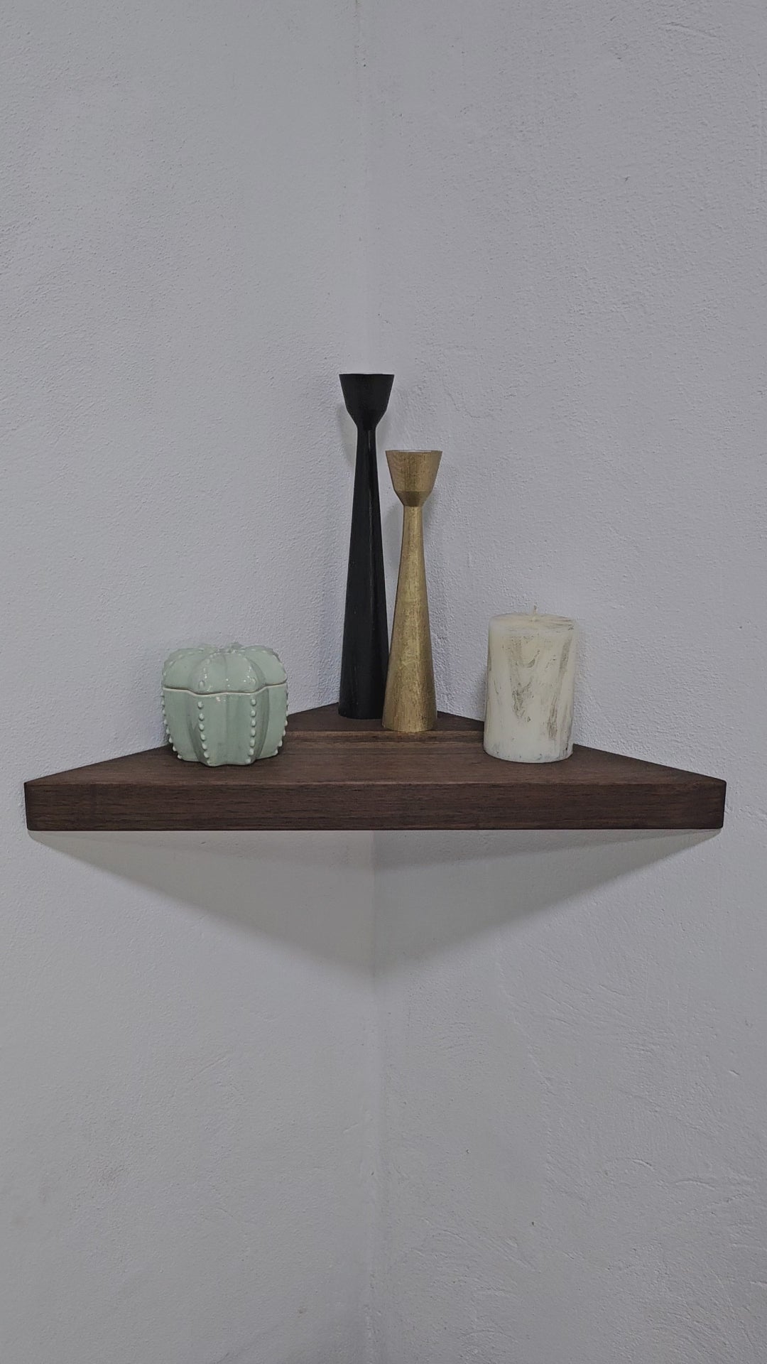 Tilføj et elegant touch til dit hjem med denne hjørne hylde lavet af valnød. Med en størrelse på 35 × 35 cm og en dybde på 25 cm, passer denne hylde perfekt ind i ethvert hjørne og giver ekstra opbevaringsplads uden at optage meget plads. Ideel til at vise dekorative genstande, bøger eller andre småting. Den naturlige valnøddefinish tilføjer varme og stil til din indretning.